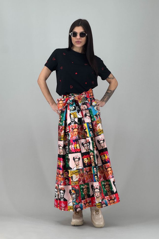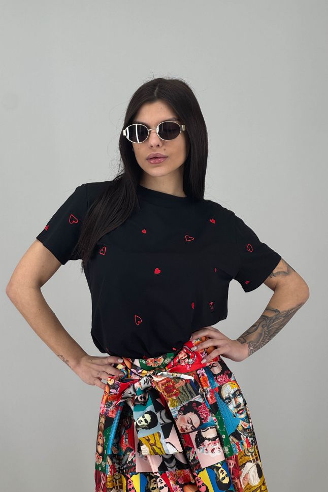 Дамска тениска с мини сърца в черно