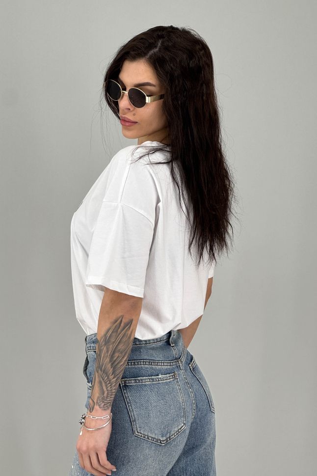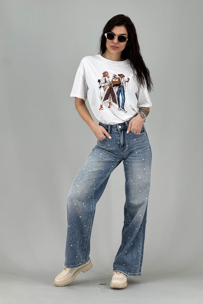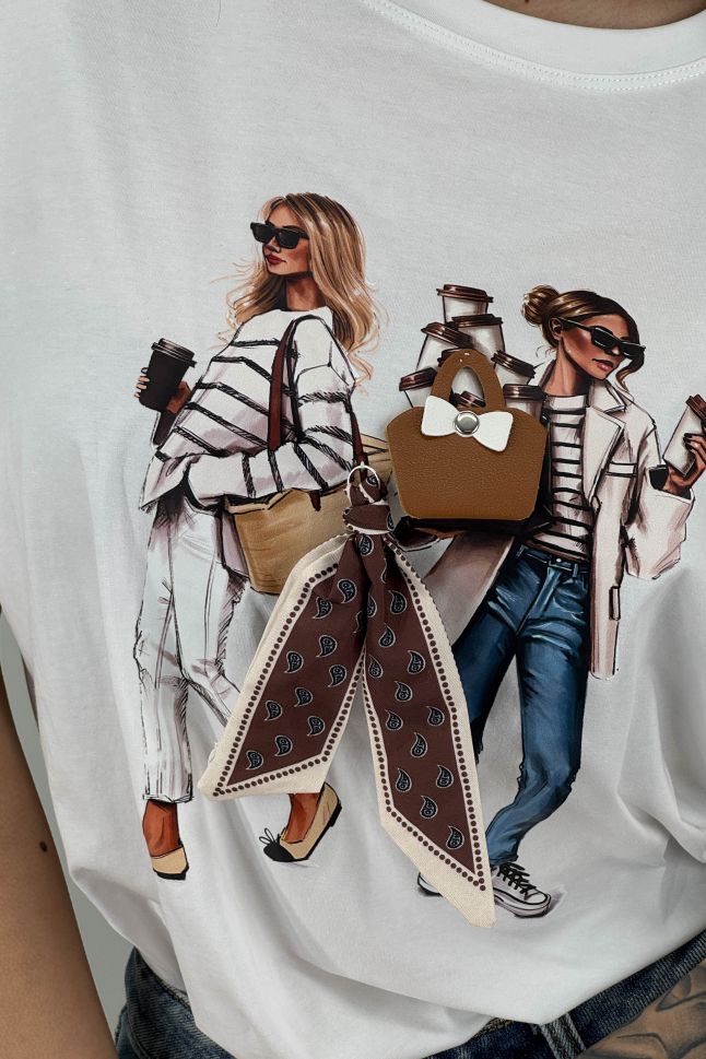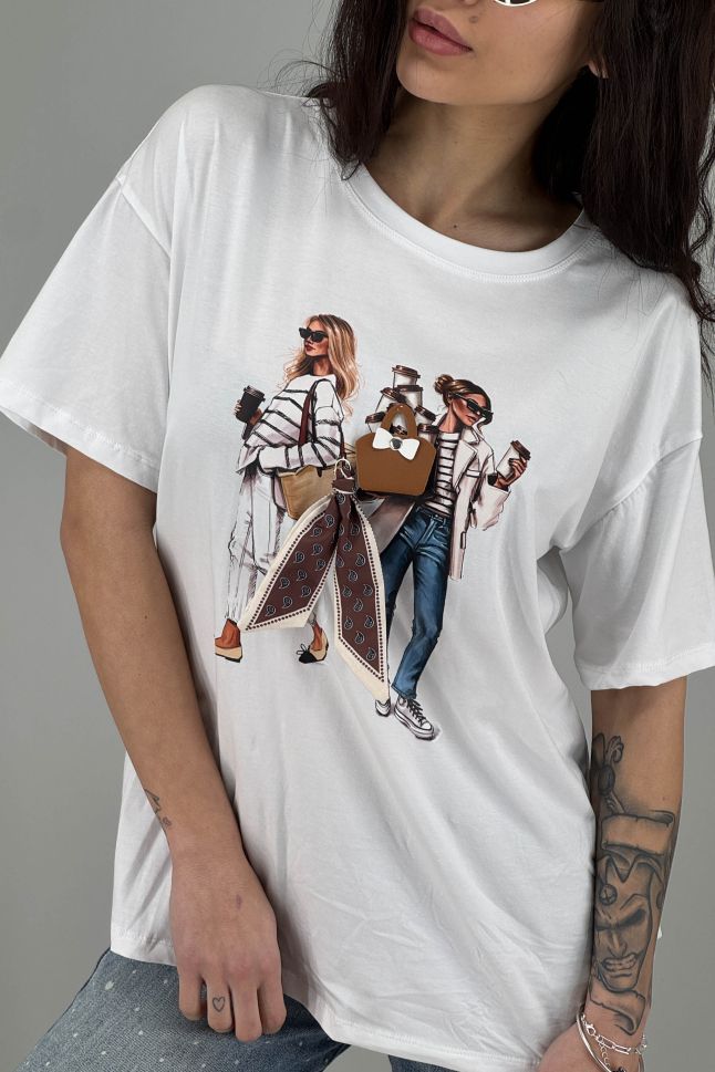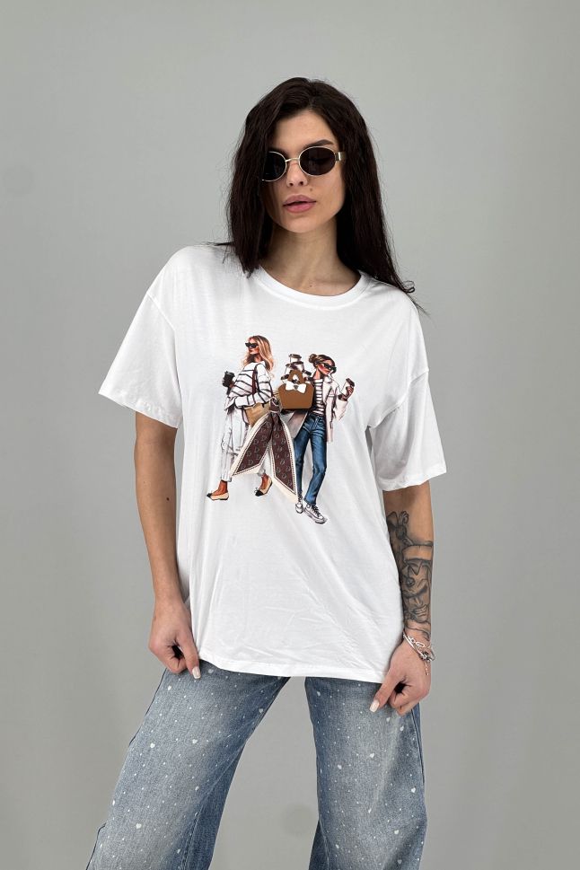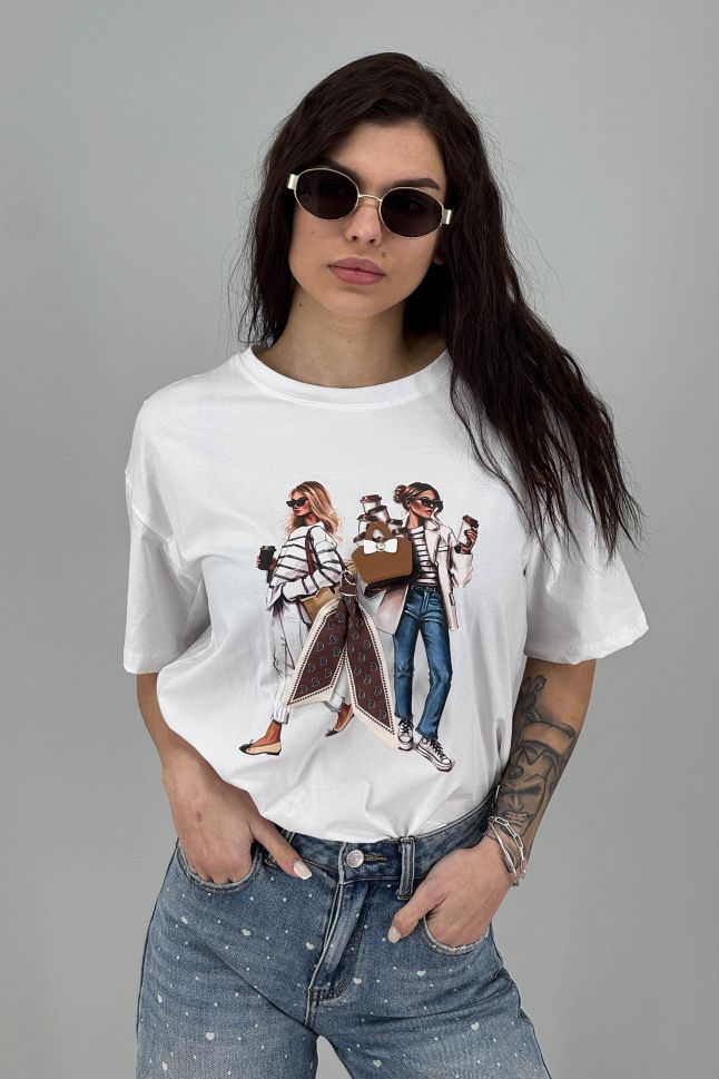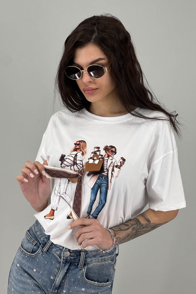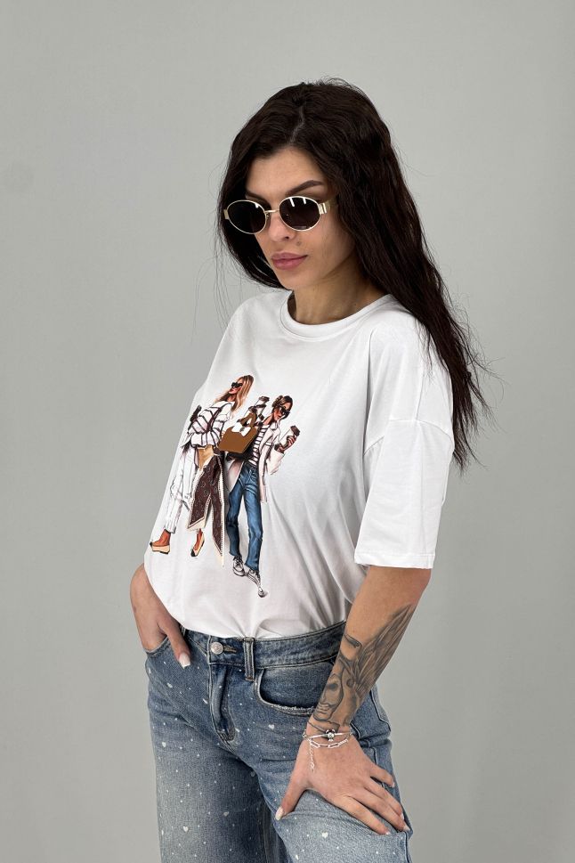 Дамска тениска в илюстративен моден принт