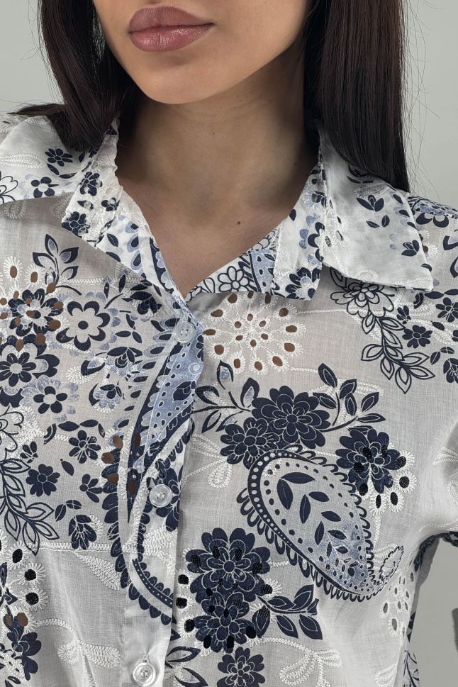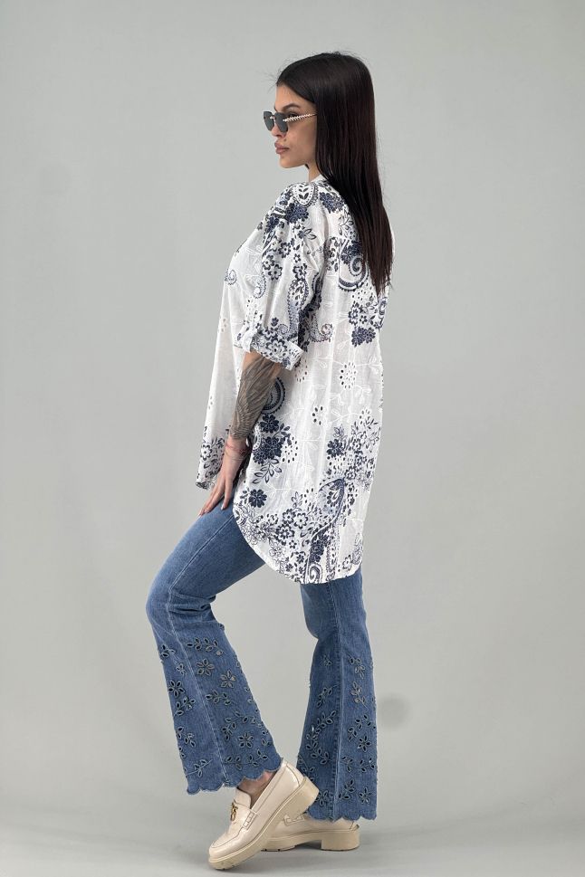 Дамска риза в бяло и синьо