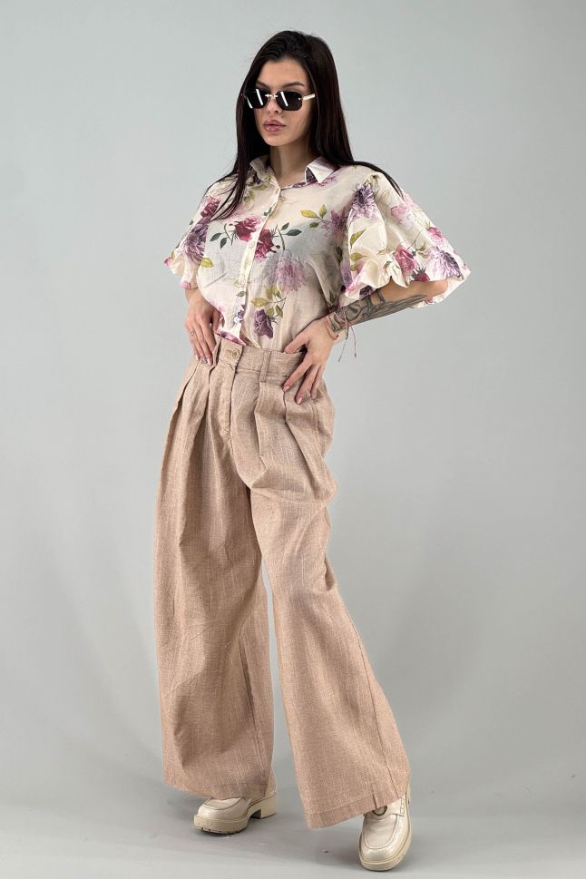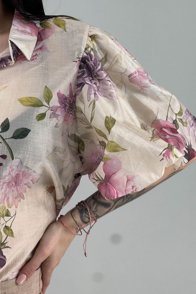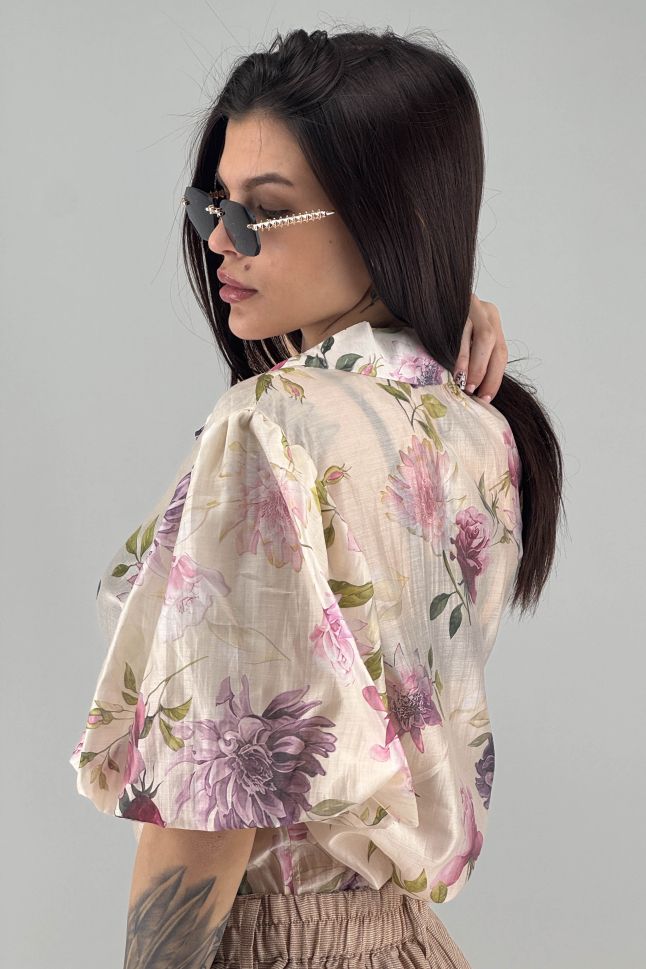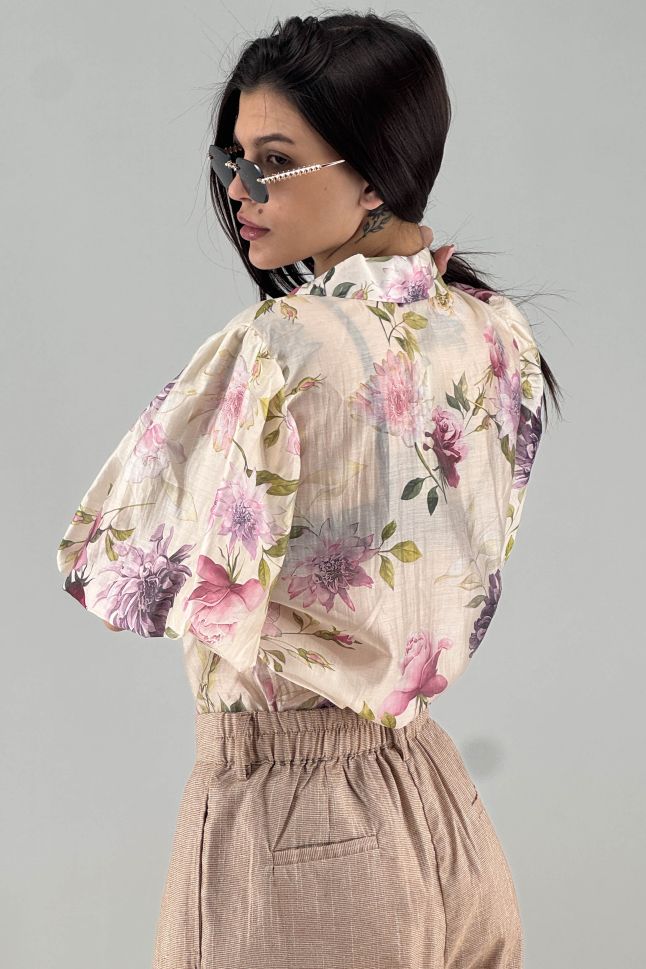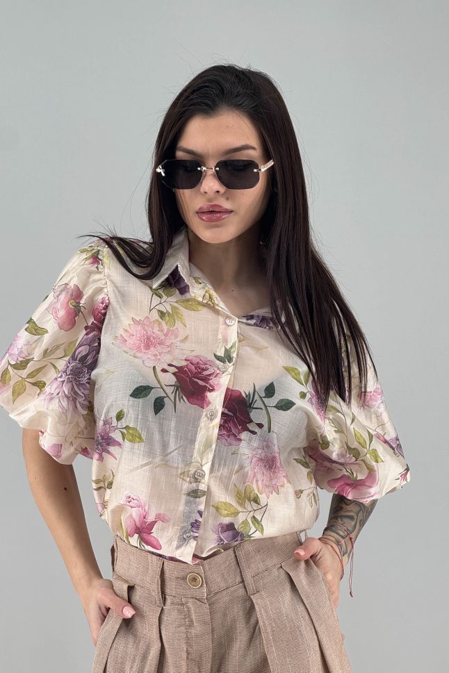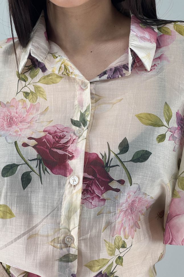 Дамска риза в цвят екрю с цветя