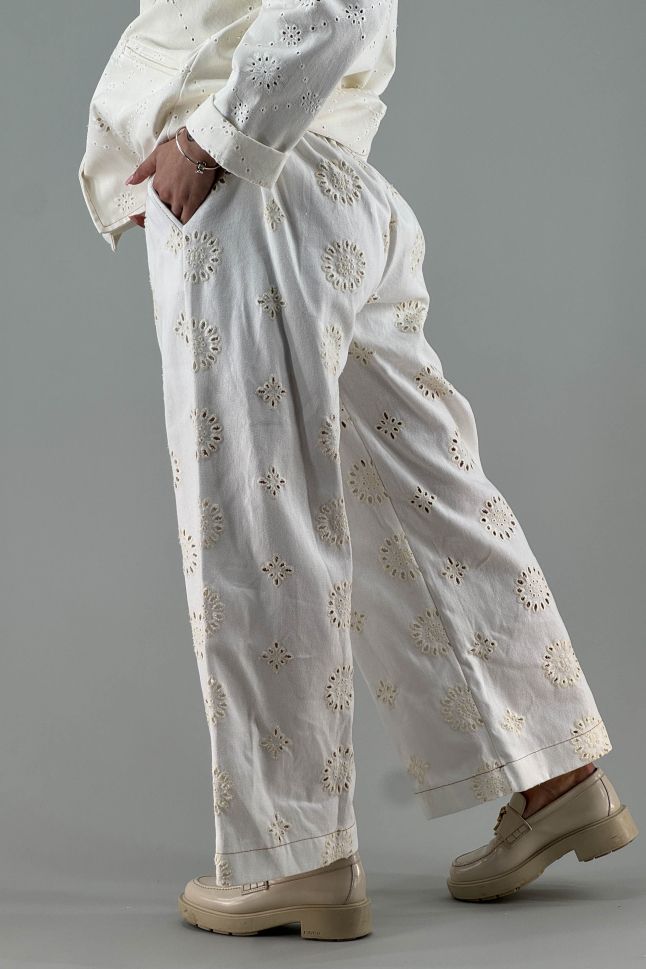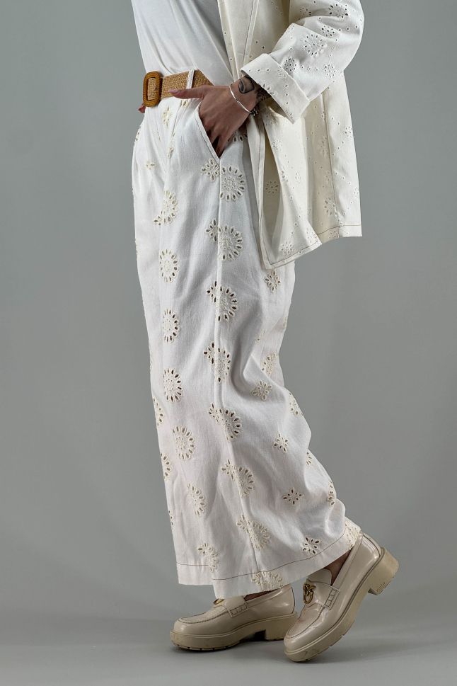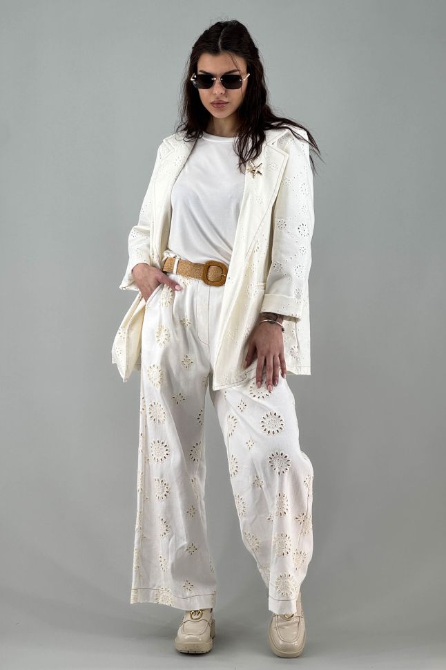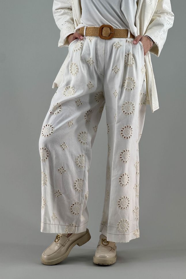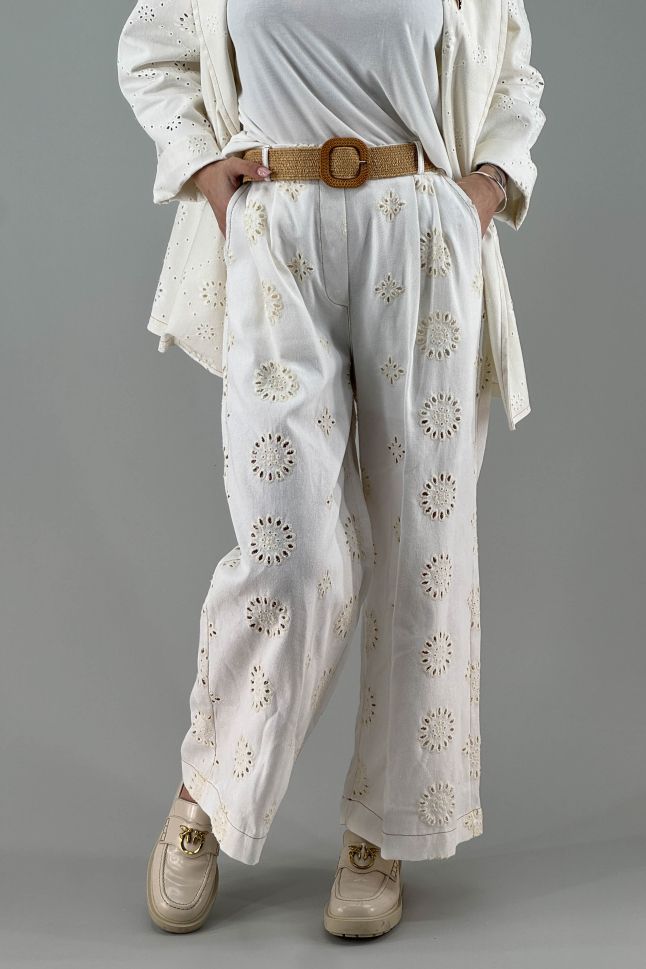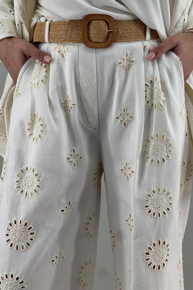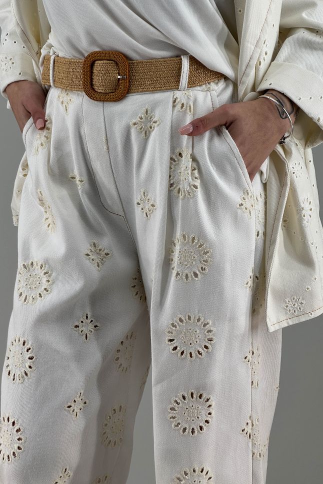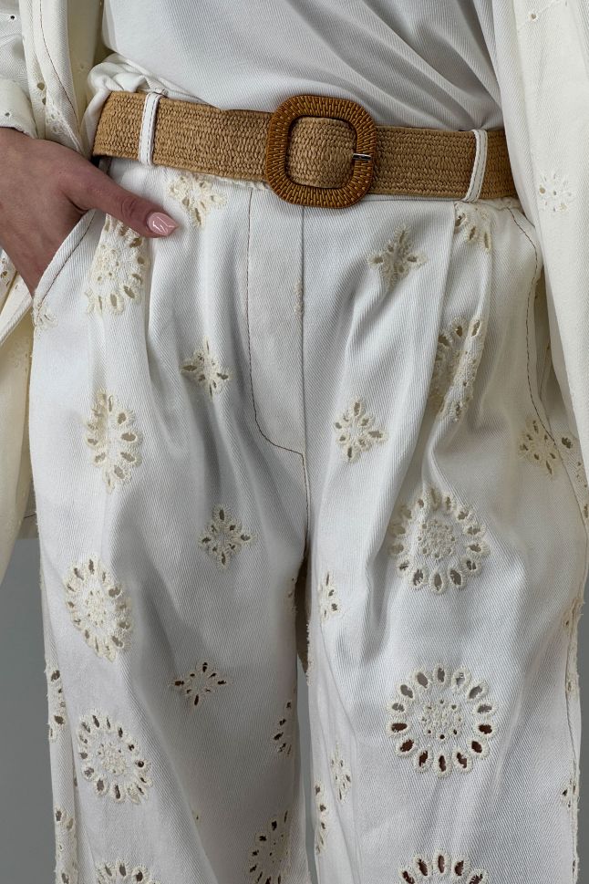 Описание: Панталона има скрит ластик в талията и колана е към него.
